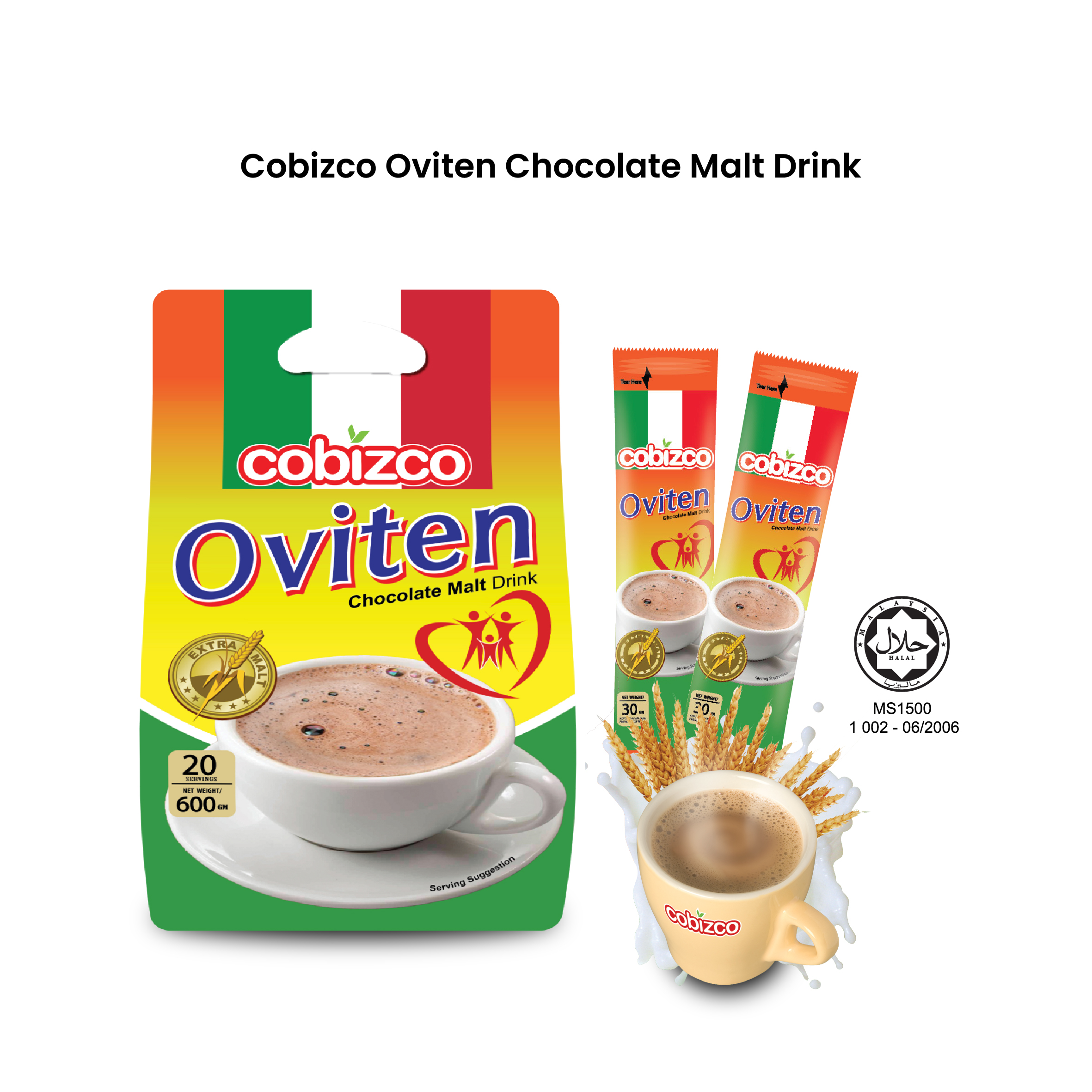 Cobizco Oviten Chocolate Malt Drink with a rich aroma and wholesome taste, which masterfully blended from the finest cocoa. It has an excellent chocolaty aroma with superb milky richness, formulated with extra malt for a richer texture, more nutritious and a sensually graceful aftertaste, as sweetness was carefully controlled.